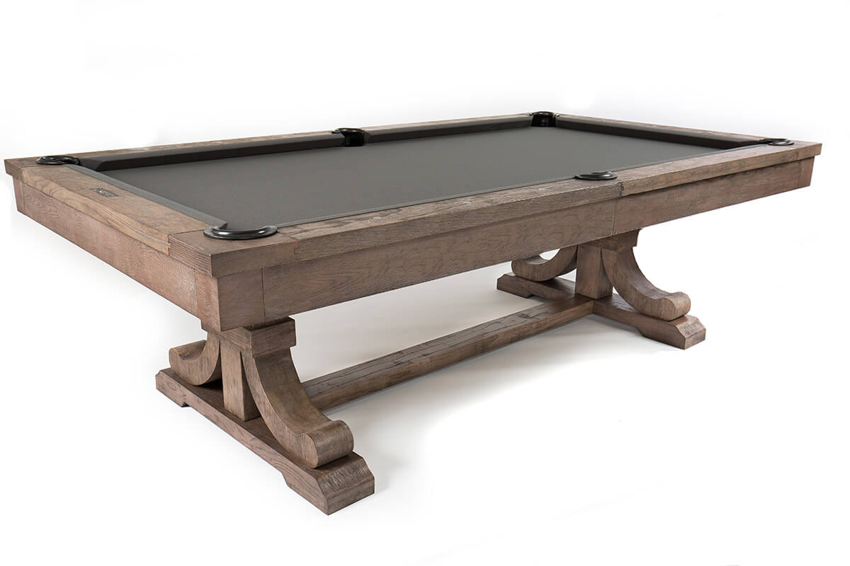 The Carmel is an exquisite solid wood table with a natural weathered oak finish. It stands out with its bold shape & unique coloring. This table will beautifully complement any home. Available with a dining top option & benches.